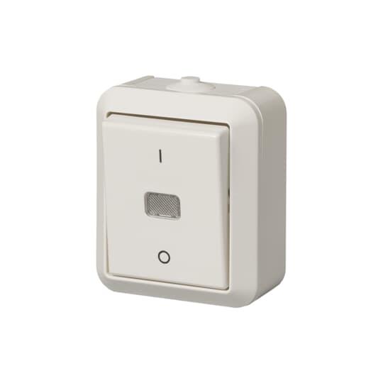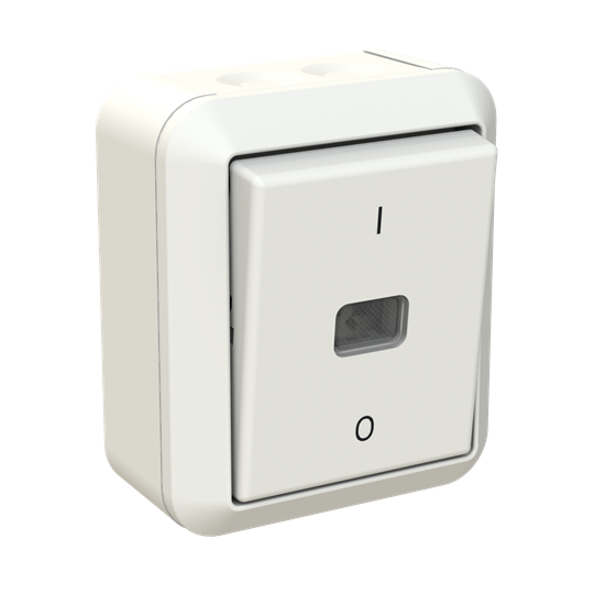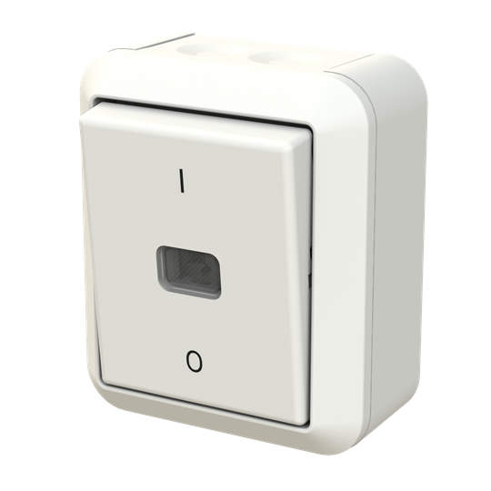 Pinta-asennettava umpikoteloitu kytkin jousiliittimin. Kytkimen rungossa on 2 lisäliitintä joita voi käyttää johtimien jatkamiseen. Liittimiin voi kytkeä max 2 johdinta ja ne on hyväksytty ML ja MK johtimille. Kotelon pohjassa on ylimääräinen potentiaalivapaa ruuviliitin johtimen jatkamiseen tai johtolajin vaihtamiseen. Merkkivalon kytkentämahdollisuus. Toimitus ei sisällä merkkilamppua.