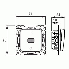 Kytkin jousikiinnitteisellä vivulla ja jousiliittimin. Liittimiin voi kytkeä max 2 johdinta ja ne on hyväksytty ML ja MK johtimille. Toimitetaan varustettuna merkkilampulla ja punaisella linssillä.