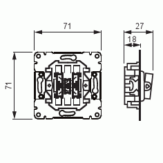 1+1+1-kytkin ilman vipuja. Runkoon sopivat vivut 1783-xx. Kytkimessä ei ole lisäliittimiä. Ei merkkivalomahdollisuutta.