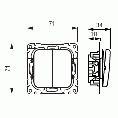 Kytkin jousikiinnitteisellä vivulla ja jousiliittimin. Liittimiin voi kytkeä max 2 johdinta ja ne on hyväksytty ML ja MK johtimille. Lisäliittimiä voi käyttää johtimien jatkamiseen.