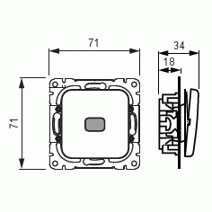Kytkin jousikiinnitteisellä vivulla ja jousiliittimin. Liittimiin voi kytkeä max 2 johdinta ja ne on hyväksytty ML ja MK johtimille. Toimitetaan varustettuna merkkilampulla ja punaisella linssillä.