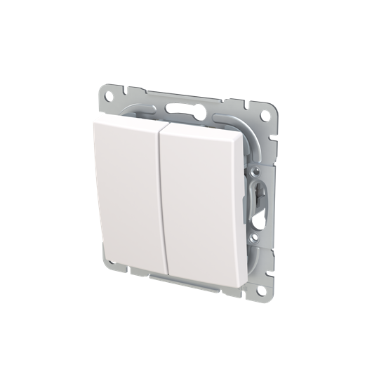 2-vipuinen painike jousikiinnitteisellä vivulla ja jousiliittimin. Liittimiin voi kytkeä max 2 johdinta ja ne on hyväksytty ML ja MK johtimille. Valkoinen RAL9003.