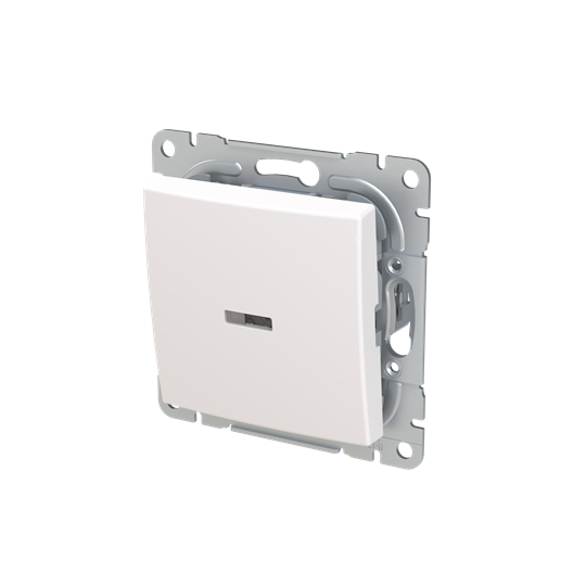 1-vipuinen painike jousikiinnitteisellä vivulla ja jousiliittimin. Liittimiin voi kytkeä max 2 johdinta ja ne on hyväksytty ML ja MK johtimille. Valkoinen RAL9003.
