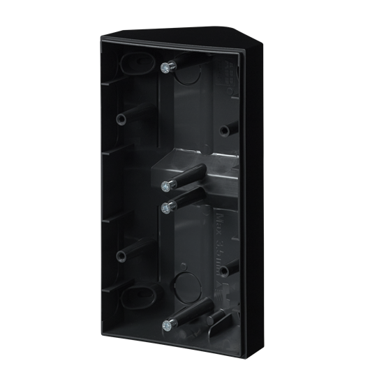 Kulmaan asennettava pinta-asennuskotelo Impressivo uppoasennus tuotteille. Koteloon voi asentaa myös paljon tilaa vaativat elektroniikkatuotteet. Ei sovellu kaksoispistorasioille eikä USB laturilla varustetulle 1-osaiselle pistorasialle. Käyttö 85mm peitelevyn kanssa.
