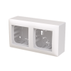 SAGA™ tuotteen valmistukseen on käytetty biopohjaista muovia. Pintakotelon avulla voidaan asentaa SAGA™ uppokalusteita pintaan. Suojausluokka IP20. Kotelon syvyys on riittävä myös elektroniikkatuotteille esim säätimille. Valmistettu korkealaatuisesta ja kestävästä muovimateriaalista. Pinta on kiiltävä ja helppo pitää puhtaana. Puhdistus tavanomaisilla miedoilla kotitalouden pesuaineilla. Puhdistamiseen ei saa käyttää tolua ja voimakkaiden liuottimien käyttöä on varottava.