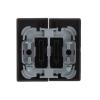 2-osainen vipu 2-vipuisille kytkinrungoille. Sopii peitelevyjen 1-osaiselle kojeelle tarkoitettuun aukkoon. Voidaan asentaa kuiviin tiloihin sisälle. Pinta on maalattu. Puhdistus tavanomaisilla miedoilla kotitalouden pesuaineilla. Voimakkaiden liuottimien käyttöä on varottava.