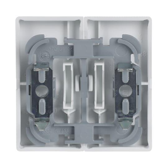 2-osainen vipu 2-vipuisille kytkinrungoille (ei runkoon 10621.xx). Sopii peitelevyjen 1-osaiselle kojeelle tarkoitettuun aukkoon sekä sovittimen 2519-xx avulla 2-osaiselle kojeelle tarkoitettuun aukkoon. Voidaan asentaa kuiviin tiloihin sisälle. Asennettaessa uppoon kosteisiin tiloihin tai ulos on käytettävä tiivistyssarjaa ja ruuvikiinnitteistä vivun runkoa. Valmistettu korkealaatuisesta ja kestävästä muovimateriaalista. Pinta on kiiltävä ja helppo pitää puhtaana. Puhdistus tavanomaisilla miedoilla kotitalouden pesuaineilla. Puhdistamiseen ei saa käyttää tolua ja voimakkaiden liuottimien käyttöä on varottava.