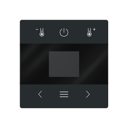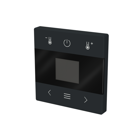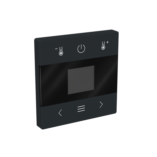 Huonetermostaatin keskiölevy, Impressivo®, väri matta musta. Sopii huonetermostaattirunkojen snro. 2815936, 2815937 ja 2815938kanssa.