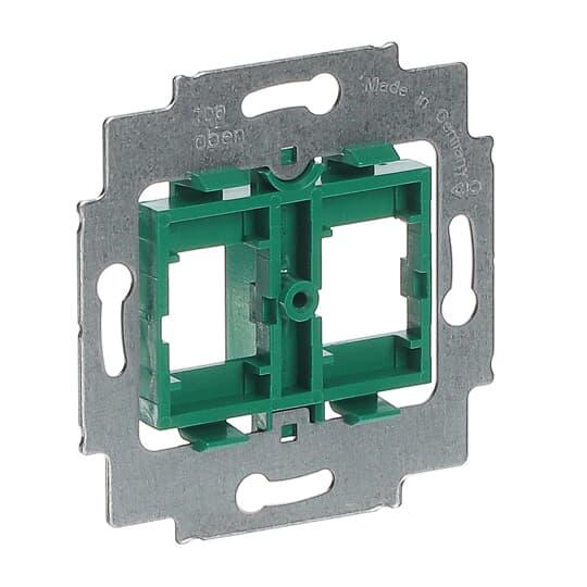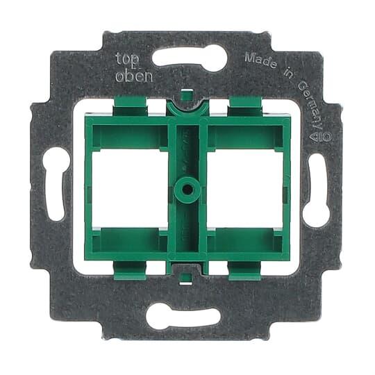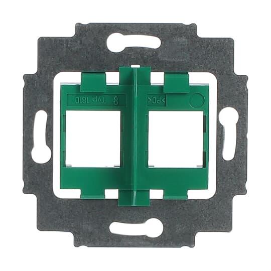 Vihreä kiinnitysrunko kahdelle Systimax RJ45 liittimelle. Kiinnitysaukko 16,9 x 17,9mm. Runkoon sopivat Impressivo keskiölevyt 1800-xx ja Jussi keskiölevy 1800U.