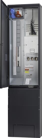1-T mittauskeskus jalustalla 400x1600x170mm, VVSK suojatut pistorasiat: 2x116 ja 1x316. Kaukoluenta malli. T2-luokan ylijännitesuojalla, 4-napainen vikavirtajohdonsuojakatkaisija latausaseman syötölle sekä tilavaraus eri EV-kuormanhallintajärjestelmälle.