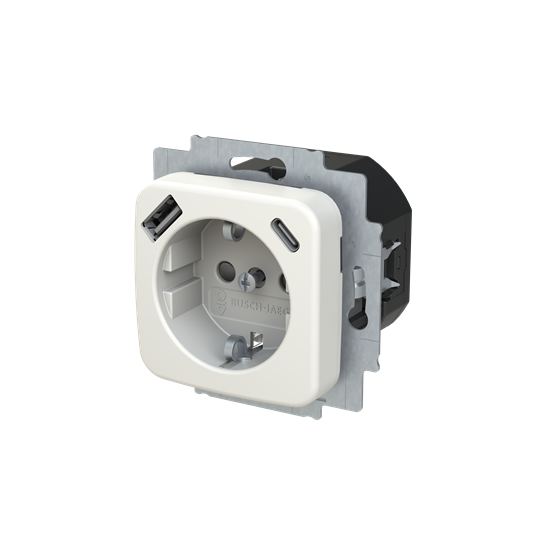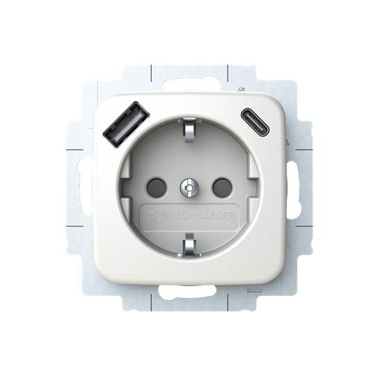 Jussi 1-osainen pistorasia USB A+C liittimillä. Mobiililaitteiden lataukseen USB-kaapelin kautta. Samanaikainen lataus USB-liittimistä ja SCHUKO®-pistorasian normaali käyttö. 1x USB A-liitin ja 1x USB C-liitin. Nimellisjännite: 250 V~ USB porttien nimellislatausjännite: 5 V-, +5 % / -5 % Sisäinen tehohäviö: 0.1 W Nimellisvirta: 16 A USB Liittimien nimellisvirta: USB A 2.4 A USB C 3.0 A. Asennus vaatii korkean pinta-asennuskotelon. Ei sovellu kulma-asennuskoteloon.