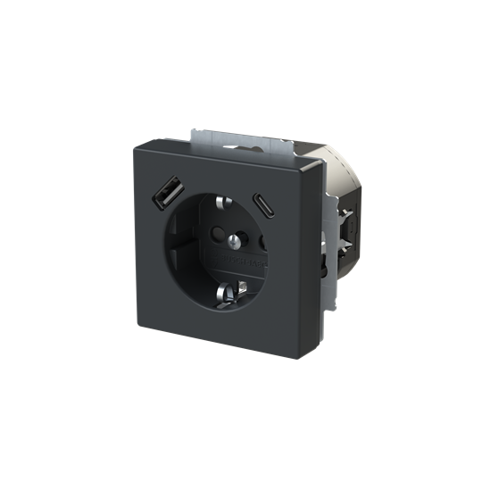 Impressivo 1-osainen pistorasia USB A+C liittimillä. Mobiililaitteiden lataukseen USB-kaapelin kautta. Samanaikainen lataus USB-liittimistä ja SCHUKO®-pistorasian normaali käyttö. 1x USB A-liitin ja 1x USB C-liitin. Nimellisjännite: 250 V~ USB porttien nimellislatausjännite: 5 V-, +5 % / -5 % Sisäinen tehohäviö: 0.1 W Nimellisvirta: 16 A USB Liittimien nimellisvirta: USB A 2.4 A USB C 3.0 A. Asennus vaatii korkean pinta-asennuskotelon. Ei sovellu kulma-asennuskoteloon.
