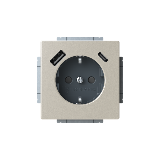1-osainen pistorasia USB A+C liittimillä. Mobiililaitteiden lataukseen USB-kaapelin kautta. Samanaikainen lataus USB-liittimistä ja SCHUKO®-pistorasian normaali käyttö. 1x USB A-liitin ja 1x USB C-liitin. Nimellisjännite: 250 V~ USB porttien nimellislatausjännite: 5 V-, +5 % / -5 % Sisäinen tehohäviö: 0.1 W Nimellisvirta: 16 A USB Liittimien nimellisvirta: USB A 2.4 A USB C 3.0 A. Asennus vaatii korkean pinta-asennuskotelon. Ei sovellu kulma-asennuskoteloon.