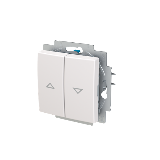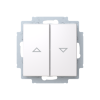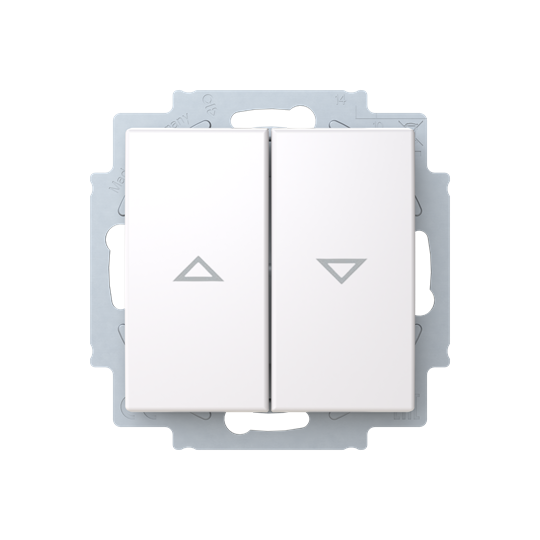 SAGA™ verhokytkin (ryhmä/vuoro-painikekytkin). Kytkin toimii siten että molempien painikkeiden samanaikainen painaminen on estetty, joten se sopii hyvin esim. verhomoottorin ohjaamiseen. Ei merkkivalomahdollisuutta. Muoviraaka-aineessa erittäin korkea UV-suojaus. Valkoinen RAL9003.