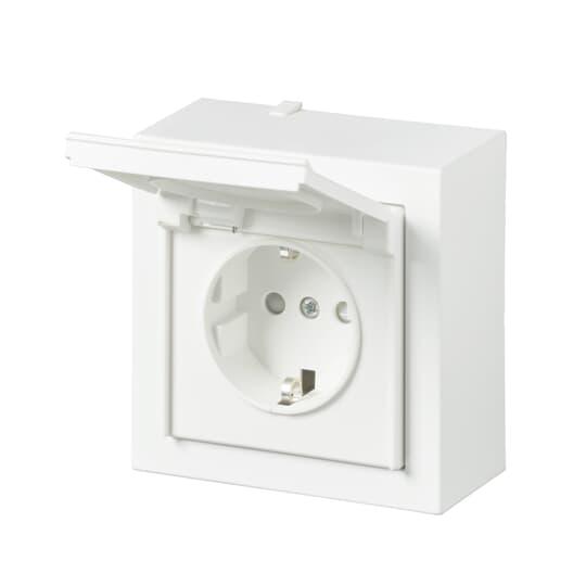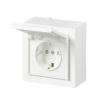 Pinta-asennettava roiskevesitiivis pistorasia. Pistorasiassa on liittimet kutakin kosketinta kohden ja niihin voi kytkeä max 2 johtoa. Liittimet on hyväksytty ML- ja MK-johtimille