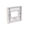SAGA™ keskiölevy erilaisille telerasioille mm. USB-latausasema 6475 U-500. Sopii 85mm peitelevyihin sekä sovittimen 2519-916 avulla 100mm peitelevyihin.Valmistettu korkealaatuisesta ja kestävästä muovimateriaalista. Valmistettu korkealaatuisesta ja kestävästä muovimateriaalista. Pinta on kiiltävä ja helppo pitää puhtaana. Muoviraaka-aineessa erittäin korkea UV-suojaus. Valkoinen RAL9003.