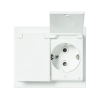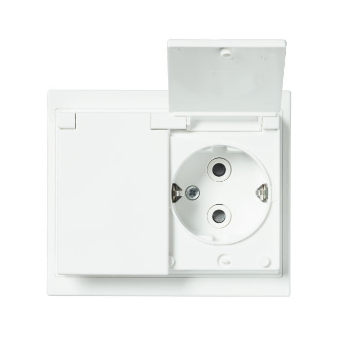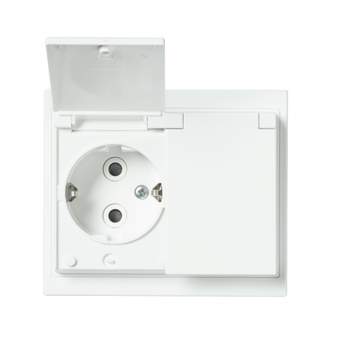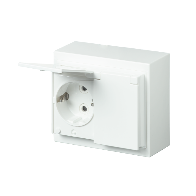 Pinta-asennettava roiskevesitiivis pistorasia. Pistorasiassa on liittimet kutakin kosketinta kohden ja niihin voi kytkeä max 4 johtoa (haaroitusmahdollisuus). Liittimet on hyväksytty ML ja MK johtimille.