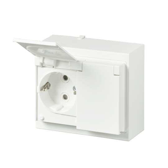 Pinta-asennettava roiskevesitiivis pistorasia. Pistorasiassa on liittimet kutakin kosketinta kohden ja niihin voi kytkeä max 4 johtoa (haaroitusmahdollisuus). Liittimet on hyväksytty ML- ja MK-johtimille.