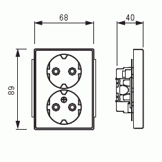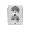 Uppoasennettava pistorasia. Pistorasiassa on liittimet kutakin kosketinta kohden ja niihin voi kytkeä max 4 johtoa (haaroitusmahdollisuus). Liittimet on hyväksytty ML ja MK johtimille. Ei potentiaalivapaita liittimiä. Pistorasian runko on kosketussuojainen ilman peitelevyä.