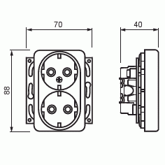 Pistorasiassa on liittimet kutakin kosketinta kohden ja niihin voi kytkeä max 4 johtoa (haaroitusmahdollisuus). Liittimet on hyväksytty ML ja MK johtimille. Ei potentiaalivapaita liittimiä. Pistorasian runko on kosketussuojainen ilman peitelevyä.