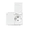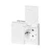 Uppoasennettava pistorasia. Pistorasiassa on liittimet kutakin kosketinta kohden ja niihin voi kytkeä max 4 johtoa (haaroitusmahdollisuus). Liittimet on hyväksytty ML ja MK johtimille. Ei potentiaalivapaita liittimiä. Pistorasian runko on kosketussuojainen ilman peitelevyä. Suojausluokka on IP21 ja IP44 lisäämällä tiivisteen 2464. IP44 hyväksytty vaaka suoraan ja läppäkannet ylös päin auki asennettuna. Läppäkansi on varustettu jousimekanismilla.