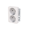 2-osainen pistorasia peitelevyllälevyllä. Pistorasiassa on liittimet kutakin kosketinta kohden ja niihin voi kytkeä max 4 johtoa (haaroitusmahdollisuus). Liittimet on hyväksytty ML ja MK johtimille. Ei potentiaalivapaita liittimiä. Pistorasian runko on kosketussuojainen ilman peitelevyä. Muoviraaka-aineessa erittäin korkea UV-suojaus. Valkoinen RAL9003. Multipakkaus 50 kpl