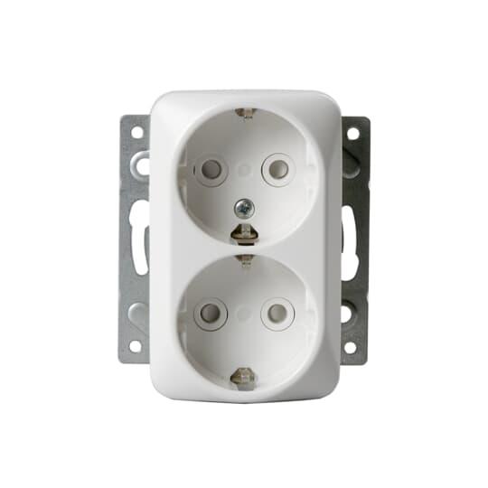 Uppoasennettava pistorasia. Pistorasiassa on liittimet kutakin kosketinta kohden ja niihin voi kytkeä max 4 johtoa (haaroitusmahdollisuus). Liittimet on hyväksytty ML ja MK johtimille. Ei potentiaalivapaita liittimiä. Pistorasian runko on kosketussuojainen ilman peitelevyä. Suurpakkaus joka sisältää 100kpl pistorasian runkoja sekä niihin keskiölevyt.