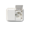 Uppoasennettava roiskevesitiivis pistorasia. Pistorasiassa on liittimet kutakin kosketinta kohden ja niihin voi kytkeä max 4 johtoa (haaroitusmahdollisuus). Liittimet on hyväksytty ML ja MK johtimille. Ei potentiaalivapaita liittimiä. Pistorasian runko on kosketussuojainen ilman peitelevyä. IP44 hyväksytty vaaka suoraan ja läppäkannet ylös päin auki asennettuna.