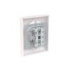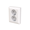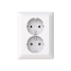 2-osainen pistorasia peitelevyllä. Pistorasiassa on liittimet kutakin kosketinta kohden ja niihin voi kytkeä max 4 johtoa (haaroitusmahdollisuus). Liittimet on hyväksytty ML ja MK johtimille. Ei potentiaalivapaita liittimiä. Pistorasian runko on kosketussuojainen ilman peitelevyä. Muoviraaka-aineessa erittäin korkea UV-suojaus. Valkoinen RAL9003.