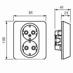 Pistorasiassa on liittimet kutakin kosketinta kohden ja niihin voi kytkeä max 4 johtoa (haaroitusmahdollisuus). Liittimet on hyväksytty ML- ja MK-johtimille. Ei potentiaalivapaita liittimiä. Pistorasian runko on kosketussuojainen ilman peitelevyä.