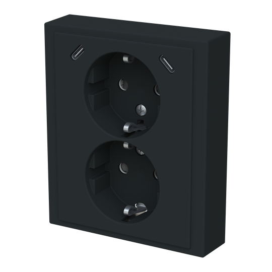 Pistorasia, Impressivo, 2-osainen, maadoitettu, 2 x USB C laturilla, mattamusta