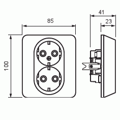 Pistorasiassa on liittimet kutakin kosketinta kohden ja niihin voi kytkeä max 4 johtoa (haaroitusmahdollisuus). Liittimet on hyväksytty ML ja MK johtimille. Ei potentiaalivapaita liittimiä. Pistorasian runko on kosketussuojainen ilman peitelevyä.