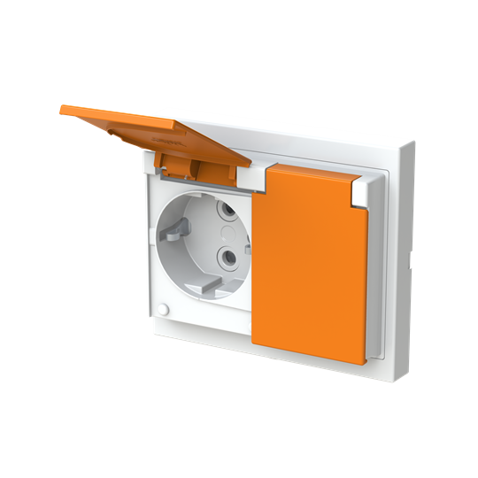 Pistorasia, Impressivo, 2-os, maad, IP44, kokonainen tuote, valkoinen oranssit läpät, jousiliittimin, haaroitusliittimet