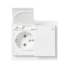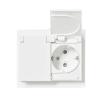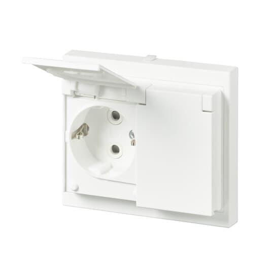 Uppoasennettava roiskevesitiivis pistorasia. Pistorasiassa on liittimet kutakin kosketinta kohden ja niihin voi kytkeä max 4 johtoa (haaroitusmahdollisuus). Liittimet on hyväksytty ML- ja MK-johtimille. Ei potentiaalivapaita liittimiä. Pistorasian runko on kosketussuojainen ilman peitelevyä. IP44 hyväksytty vaaka suoraan ja läppäkannet ylös päin auki asennettuna. Toimitus sisältää myös peitelevyn. Läppäkansi on varustettu jousimekanismilla.