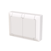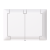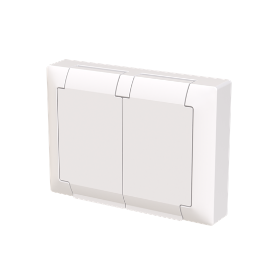 Uppoasennettava roiskevesitiivis pistorasia. Pistorasiassa on liittimet kutakin kosketinta kohden ja niihin voi kytkeä max 4 johtoa (haaroitusmahdollisuus). Liittimet on hyväksytty ML ja MK johtimille. Ei potentiaalivapaita liittimiä. Pistorasian runko on kosketussuojainen ilman peitelevyä. IP44 hyväksytty vaaka suoraan ja läppäkannet ylös päin auki asennettuna. Toimitus sisältää myös peitelevyn. Muoviraaka-aineessa erittäin korkea UV-suojaus. Valkoinen RAL9003.