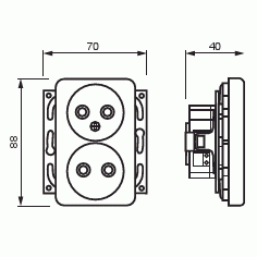 2-osainen 0-luokan pistorasia keskiölevyllä. Pistorasiassa on liittimet 0- ja N-johtimille ja niihin voi kytkeä max 4 johtoa (haaroitusmahdollisuus). Ei lisäliittimiä. Liittimet on hyväksytty ML ja MK johtimille. Pistorasian runko on kosketussuojainen ilman peitelevyä. Pistorasiaan voi lisätä kynnet työmaalla.