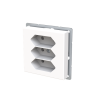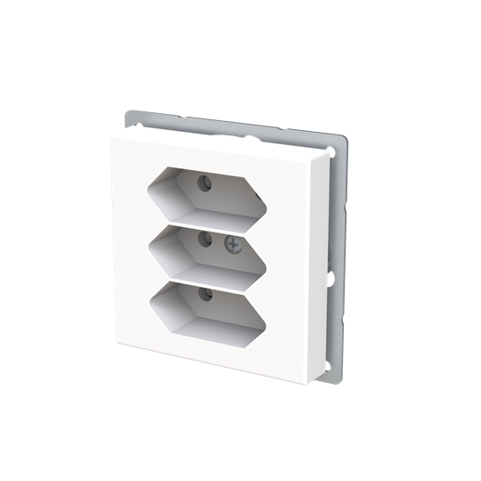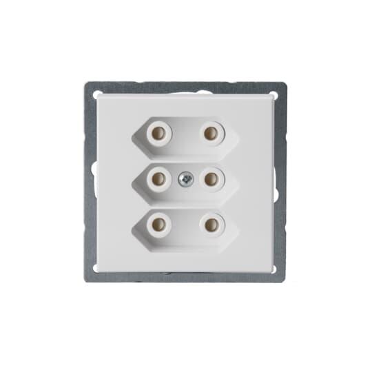 3-osainen Euro pistorasia keskiölevyllä. Pistorasiassa on liittimet 0- ja N-johtimille ja niihin voi kytkeä max 4 johtoa (haaroitusmahdollisuus). Lisäksi rungossa on 2-lisäliitintä joihin voi kytkeä kumpaankin 2 johtoa. Liittimet on hyväksytty ML ja MK johtimille. Pistorasian runko on kosketussuojainen ilman peitelevyä.