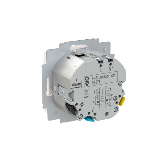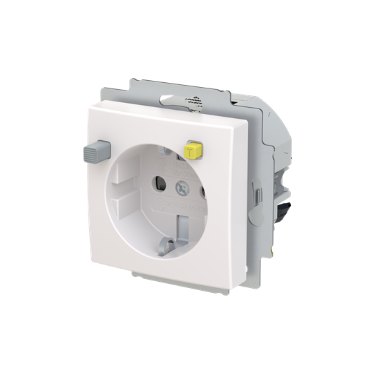 SAGA™ Kojerasiaan asennettava A-tyypin vikavirtasuojapistorasia. Kojeessa on liittimet, joihin voidaan kytkeä pistorasioita, valaisimia tms.