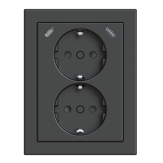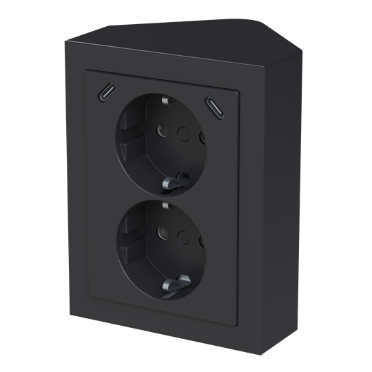 Impressivo® 2-osainen kulmapistorasia kahdella sisäänrakennetulla USB C-latausliittimellä varustettuna.