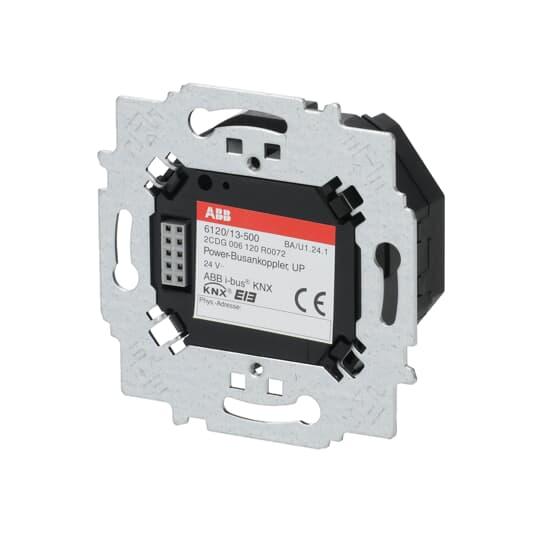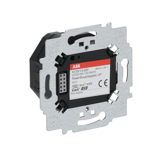 Väyläliitäntäyksikkö 6120/13-500 lisäjännitteellä Busch-priOn painikkeiden yhteyteen kun käytetään 2-tai 3-osaista aluslevyä.
