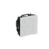 2-osainen painike, joka lähettää sähkeen väylälle, LED-idikointi. KNX-väyläliityntäyksikkö sisällyy toimitukseen. Peitelevy ei sisälly toimitukseen.