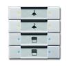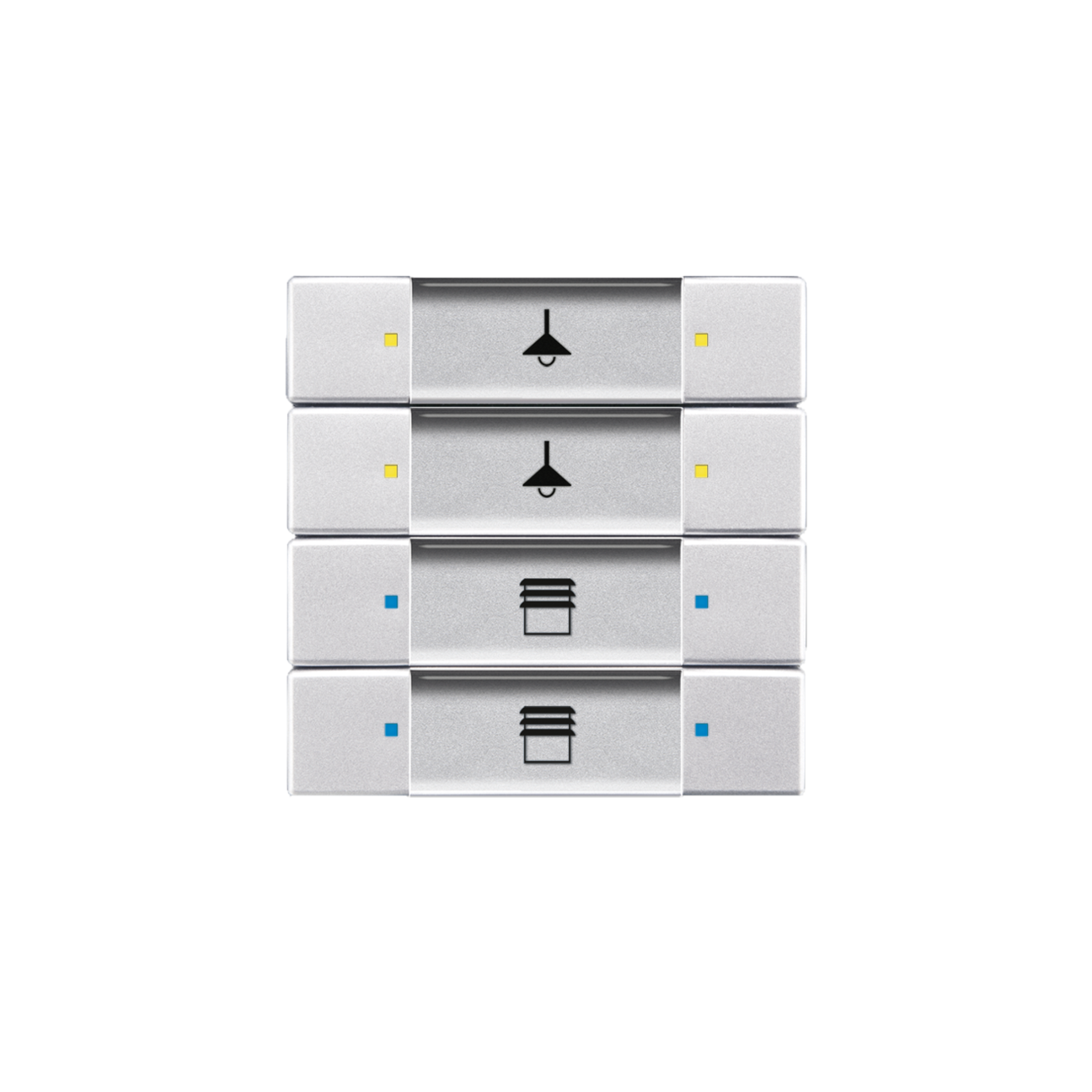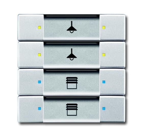 4/8-osainen painike, joka lähettää sähkeen väylälle, LED-idikointi. Asennetaan KNX-väyläliityntäyksikköön 6120/12-101 tai 6120/13. Peitelevy ei sisälly toimitukseen.