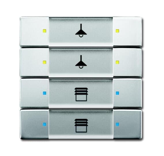 4/8-osainen painike, joka lähettää sähkeen väylälle, LED-idikointi. Asennetaan KNX-väyläliityntäyksikköön 6120/12-101 tai 6120/13. Peitelevy ei sisälly toimitukseen.