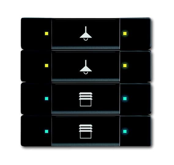 4-osainen painike, joka lähettää sähkeen väylälle, LED-idikointi. Asennetaan KNX-väyläliityntäyksikköön 6120/12-101 tai 6120/13. Peitelevy ei sisälly toimitukseen.