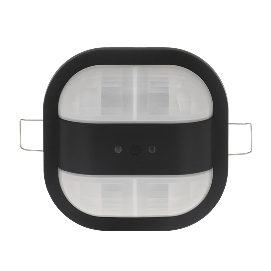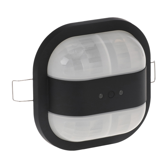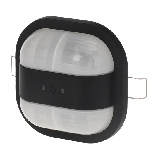 2-kanavainen korkean tilan liiketunnistin väyläliitynnällä. Liikkeeseen ja valoisuuteen perustuva päälle kytkeminen, sammutus porrastetusti kahdella tasolla. Tunnistimen koko 91x91 mm ja näkyvän osan korkeus 23 mm. Kattoasennus uppoon tai pintaan pinta-asennuskoteloa käyttäen. Uppoasennus jousikiinnityksellä, ei rasiaan. Tunnistimessa 360º valvonta-alue ja asennettua 6 m korkeuteen alueen halkaisija on 18 m, 12 m korkeudessa 24 m.