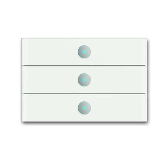 3-osainen vapaasti ohjelmoitava monitoiminen Busch-priOn® painiketaulu. Asennettavaksi 1-, 2- ja 3-osaiseen aluslevyyn(6346/10-101-500, 6346/11-101-500 ja 6346/12-101-500). Innovatiivinen värillinen merkkivalo painikkeessa kuvastaa painikkeen toimintoa keltainen=valaistus, sininen=verho-ohjaus, oranssi=lämmitys, magenta=tilanne ja valkoinen=neutraali / ei toimintoa määritetty) tai perinteinen punainen/vihreä valo. Painikkeen symbolia voi myös vaihtaa jotta se kuvastaa vastaa toimintoa: valaistus (6353/20-860), verho-ohjaus (6353/30-860), termostaatti (6353/40-860) ja tilanne (6353/50-860). Lisäksi kymmenen vapaasti käytettäviä lisätoimintoja esim. logiikkaa, aikaviiveet, porrasvaloautomaatti ja tilanteet.