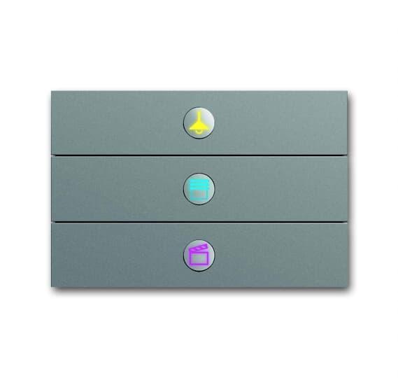 3-osainen vapaasti ohjelmoitava monitoiminen Busch-priOn® painiketaulu. Asennettavaksi 1-, 2- ja 3-osaiseen aluslevyyn(6346/10-101-500, 6346/11-101-500 ja 6346/12-101-500). Innovatiivinen värillinen merkkivalo painikkeessa kuvastaa painikkeen toimintoa keltainen=valaistus, sininen=verho-ohjaus, oranssi=lämmitys, magenta=tilanne ja valkoinen=neutraali / ei toimintoa määritetty) tai perinteinen punainen/vihreä valo. Painikkeen symbolia voi myös vaihtaa jotta se kuvastaa vastaa toimintoa: valaistus (6353/20-860), verho-ohjaus (6353/30-860), termostaatti (6353/40-860) ja tilanne (6353/50-860). Lisäksi kymmenen vapaasti käytettäviä lisätoimintoja esim. logiikkaa, aikaviiveet, porrasvaloautomaatti ja tilanteet.