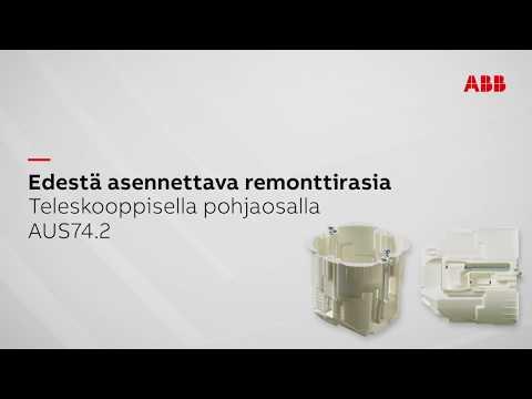 AUS74.2 on edestä asennettava teleskooppisella pohjaosalla varustettu kojerasia 1-3 kipsilevyisiin seiniin (seinän paksuus 9 - 39 mm).