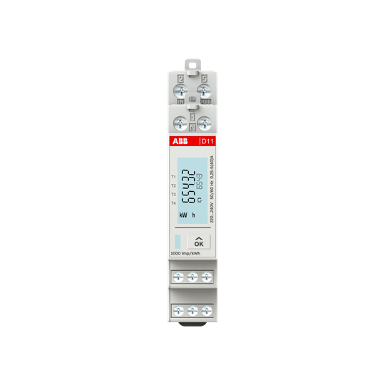 Sähkön kulutusmittari 1-vaiheinen, 40 A, 230 VAC, suorakytketty, tarkkuusluokka B (lk.1), MID-hyväksytty, kaksisuuntainen mittaus. Loisenergianmittaus, tarkkuusluokka 2. 4-tariffimittaus. 1-tulo ja 1-lähtö, max 40 VDC (pulssi-/hälytyslähtö). Muut sähkösuureet: tehot, jännite, virta, taajuus, tehokerroin ja cosphi. 1 DIN moduuli. Käyttölämpötila -40…+70 °C. M-bus.