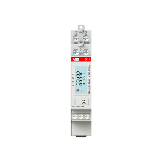 Sähkön kulutusmittari 1-vaiheinen, 40 A, 230 VAC, suorakytketty, tarkkuusluokka B (lk.1), MID-hyväksytty, kaksisuuntainen mittaus. Loisenergianmittaus, tarkkuusluokka 2. 4-tariffimittaus. 1-tulo ja 1-lähtö, max 40 VDC (pulssi-/hälytyslähtö). Muut sähkösuureet: tehot, jännite, virta, taajuus, tehokerroin ja cosphi. 1 DIN moduuli. Käyttölämpötila -40…+70 °C.